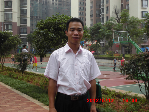 图为韦经理在公司办公楼下的留影
