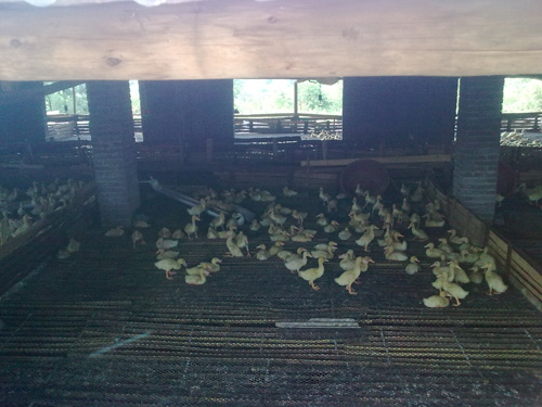鸭舍:一般独只鸭需占有比它自身大4~5倍的面积。1~7日龄,每平方米鸭舍育雏15~20只,每群宜为100只左右;8~15日龄,每平方米放养10~15只,每群宜为200~250只。早春育雏,可利用现有的育秧,烤烟、焙茶等温室,将其底层清理后填垫干稻草或刨花以饲养雏鸭,有条件的可安装火盆。有电源的地方通常设置保温伞,内装一盏250瓦红外灯泡作为热源。每30平方米鸭舍,距地面1.7米设一盏25~40瓦电灯照明,亦可用烛光或煤油灯代替。