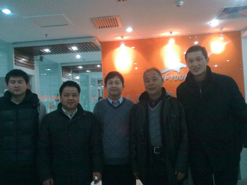 图六:公司廖总(左二)、北京张总(左三)、河南赵总(右二)在前台合影一