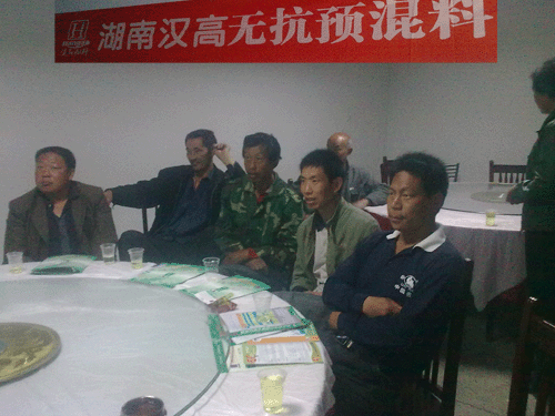 4月份正值洛阳的牡丹花节,当大地鲜花盛开,树木、花草开始生长发芽,到处一片春意盎然的景象,春天为万物生长发育的季节,湖南汉高公司在河南这个鲜花盛开的季节里,产品正在一步步进入市场,4月19日河南分公司在济源举行了一场产品效果实证会,共在济源市场邀请了十多户养殖实证代表共叙产品使用后的效果及使用的一些心得体会,对公司的40%保育料-6040H、8%小猪料-6280H、8%大猪料-6480H使用后的效果感到非常满意,并且要把这么好的产品介绍给自已熟悉朋友、亲戚。座谈会上公司廖总给养殖户介绍了产品生产工艺、公司产品特色及无抗预混料与传统产品的差别和优势等。